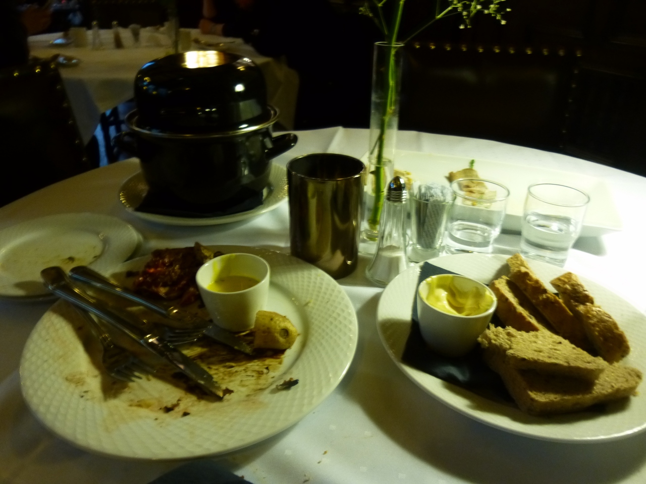 値段はノルウエーだからあきらめて・・・。早い夕食だったので奥のムンクが描かれている絵の近くのテーブルをもらえた。もっともフロアーマネジャーは予約していたのに最初は入り口の端近を指定したが、交渉したのである。だからサービス点は下げておいた。料理も雰囲気も何もいうことはない。オペラハウスのレストランカッフェ同様、楽しい夕食が出来た。