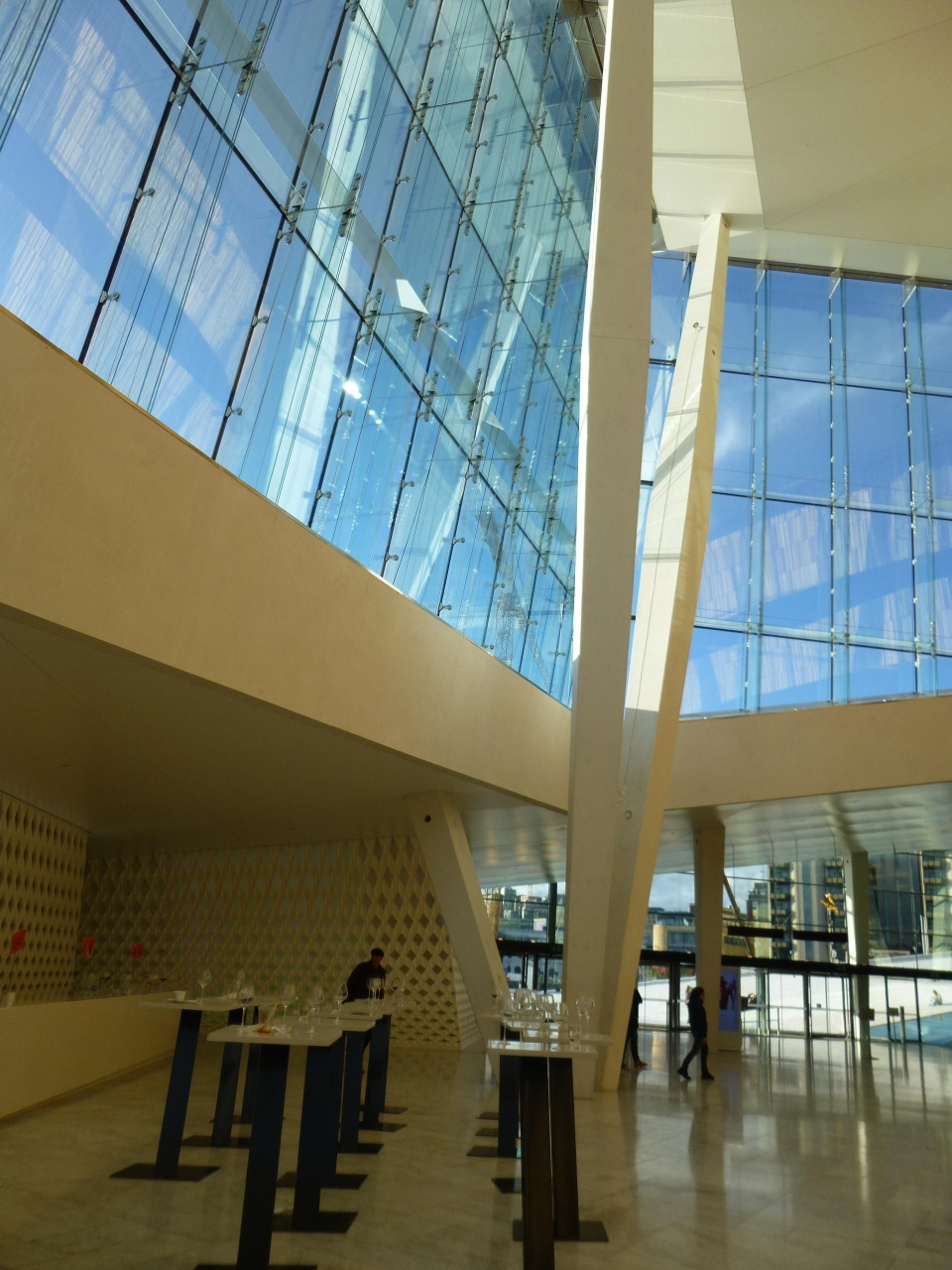 オスロ中央駅のすぐ近く。屋上がいつでも解放されているので登れる! 大理石の大建物。安藤忠雄さんのコンクリートの無機質デザインとはまた違う。とにかく気持ちがいい展望が出来る。港も船も街も。その上、中も無料で見学できる。すごいものであった。その日の夕食はこのオペラハウスのなかのレストランで食べたが、雰囲気もサービスも料理も良かった。地球の歩き方には場所だけしか書いていないが、行くべき場所として記載すればいいのに・・・