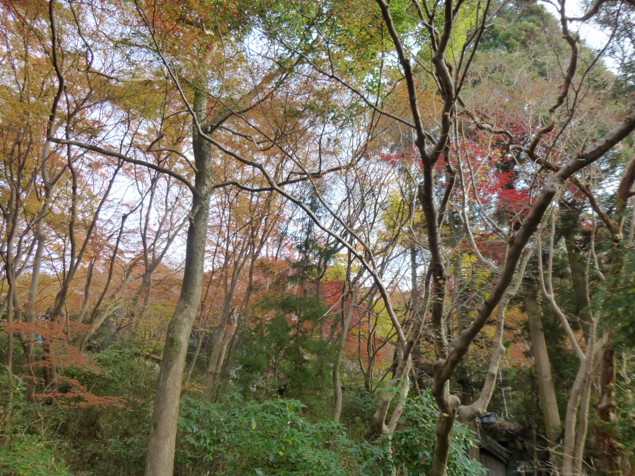 瑠璃光院の紅葉はよかった。NHKで紹介されただけに人も多かったが、見所があった。本物の釜風呂を瑠璃光院で見せてもらった。中にも入れた。本物の釜風呂跡近辺も紅葉がなんともきれいだった。しかし、ケーブル駅近辺は古い建物や垣根などの跡が汚らしくってぶち壊し。ヨーロッパなどの観光地にはあんな汚さはないなぁ。