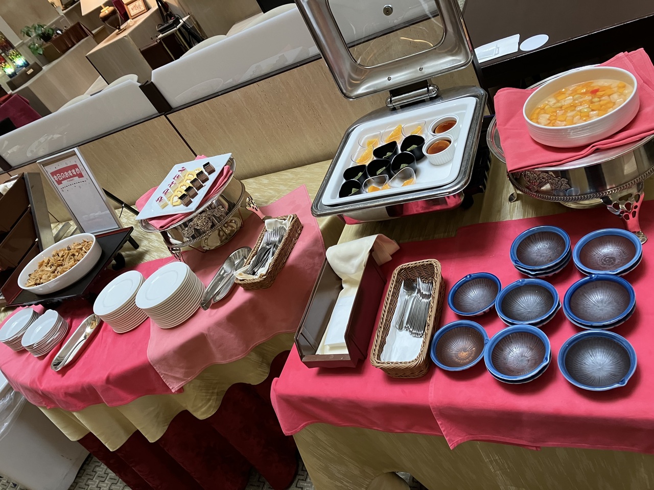 夕食ビュッフェでは、時間が経ちすぎて変色した食べ物が並んだままの状態だったのは、残念でした。