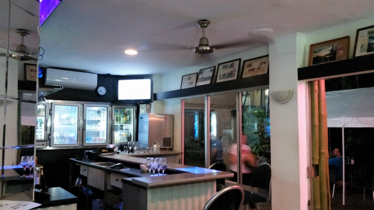 この民宿のある具志川村側は港に近く(目の前)、空港からも近い。場所も地元民の生活の場であるため、地元型ではあるが、飲み屋さんもある。