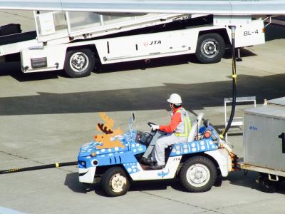 クリスマスで荷物を引くカートもトナカイ仕様です。