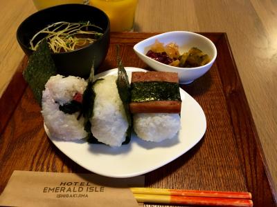 今日もおにぎり朝食です。このように具の説明があって、好きなものを告げる...