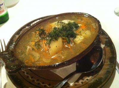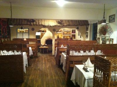 地球の歩き方で、キシニョウで唯一載っているレストラン。伝統的なモルドバ料理を出すということで行ってみました。確かにレストランの雰囲気は、いかにもな伝統的装飾で、悪くはないけど観光ちっくな感じを受けました。モルドバ料理の代表的なものを知らないので、オススメとか聞いたけど、なんか曖昧な返事。なので、メニューから適用に2品選ぶ。シチュー系。特にこれだって感じの料理でもなく、想像できる料理なので、ふ〜んて感じ。美味しいけど、新鮮味のない味つけです。これだったら市場のカフェテリアの方が、地元の人が食べている奮起も味わえて、もっと楽しいかと思います。まあ、家族でくつろぎながらだったら、こっちの方が良いとは思いますが。