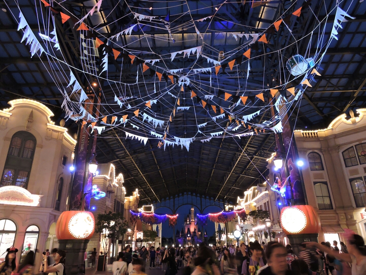 ショーもリニューアルされて、「ポップンライブ」という名にふさわしくミッキー達の衣装も音楽にちなんだ衣装になっていました。そして、アーケードのデコがおばけやカボチャでかわいくデコレーションされてました。ショーウィンドーにはおばけのミキミニがいたり、とってもかわいくなってました!
