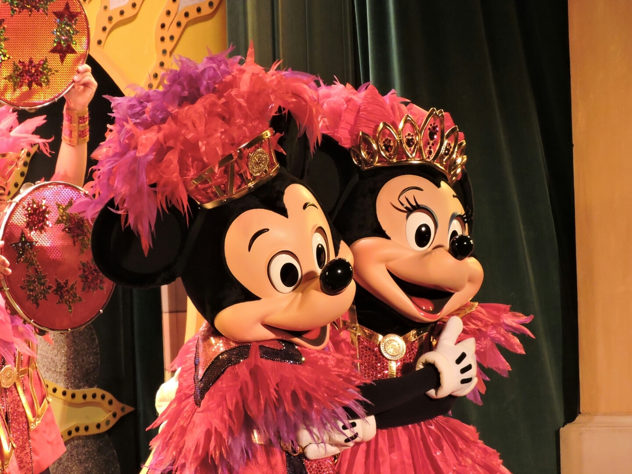 野外のショーですが、ミニーちゃんのいろんな衣装を楽しめるショーです!シンガーさんの歌声も素晴らしいし、ダンスもステキです!最初の女神のミニーちゃんもかわいいし、カラフルなミニーちゃんが見れます☆もちろんミッキーやドナ、チーデー、グーフィーも出演してます!