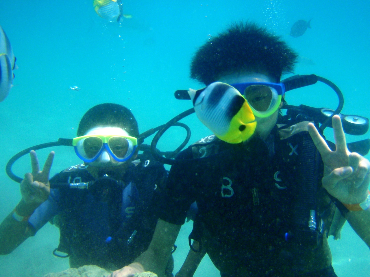 小6、11歳になった甥っ子が、遂に今回のグァム旅行で、体験ダイビングに参加出来る年齢になりました。前回、ロタ島で初体験した兄を、とても羨ましがっていたので、出発前から、とても楽しみにしていました。楽しみが大き過ぎて、イマイチな事もありますが、とっても楽しかったらしく、翌日も潜りたいと… 買い物にも行きたい私と妹… う~んと悩んでいると、ジェントリーブルーさんでは、体験ダイビングのDVDを撮って下さっていて、そのお値段が、150ドル。ダイビング代よりお高い…でも、とてもキレイに撮れていて、とても良い思い出になりそうです。ダイビングと思い出になるDVD…甥っ子もDVDを選択(^^)V 帰宅して、DVDを観ながら、楽しい思い出に浸っております。