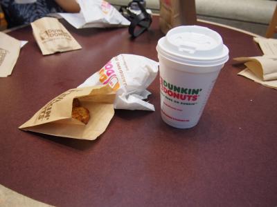 レンタカーをピックアップする前に軽く朝ごはん。ダンキンドーナツでアメリ...