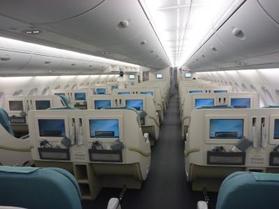 大韓航空 A380 ソウル→香港行 2階ビジネスクラスはガラガラ