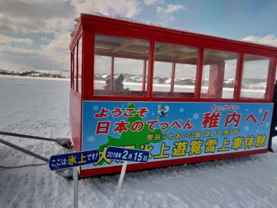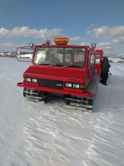 大沼の方まで雪上車で走りました。
