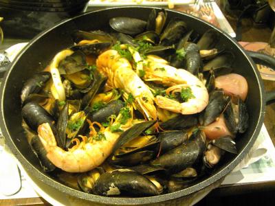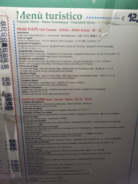 私達は第一品からパスタ、第二品から肉料理、デザートと白ワインを選びました。