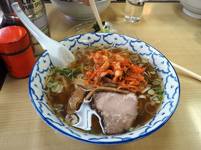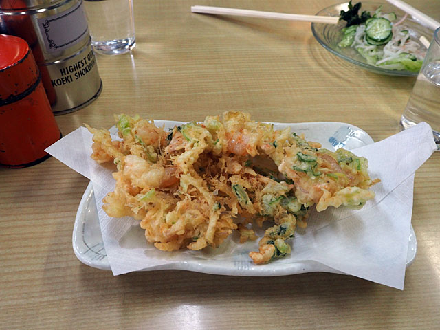 今日はキムチラーメン、大根サラダ、かき揚げを注文。
