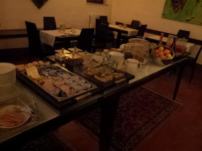 朝食はパン、ハム、チーズがそれぞれ数種、ホットミール、フルーツ、ヨーグルト。