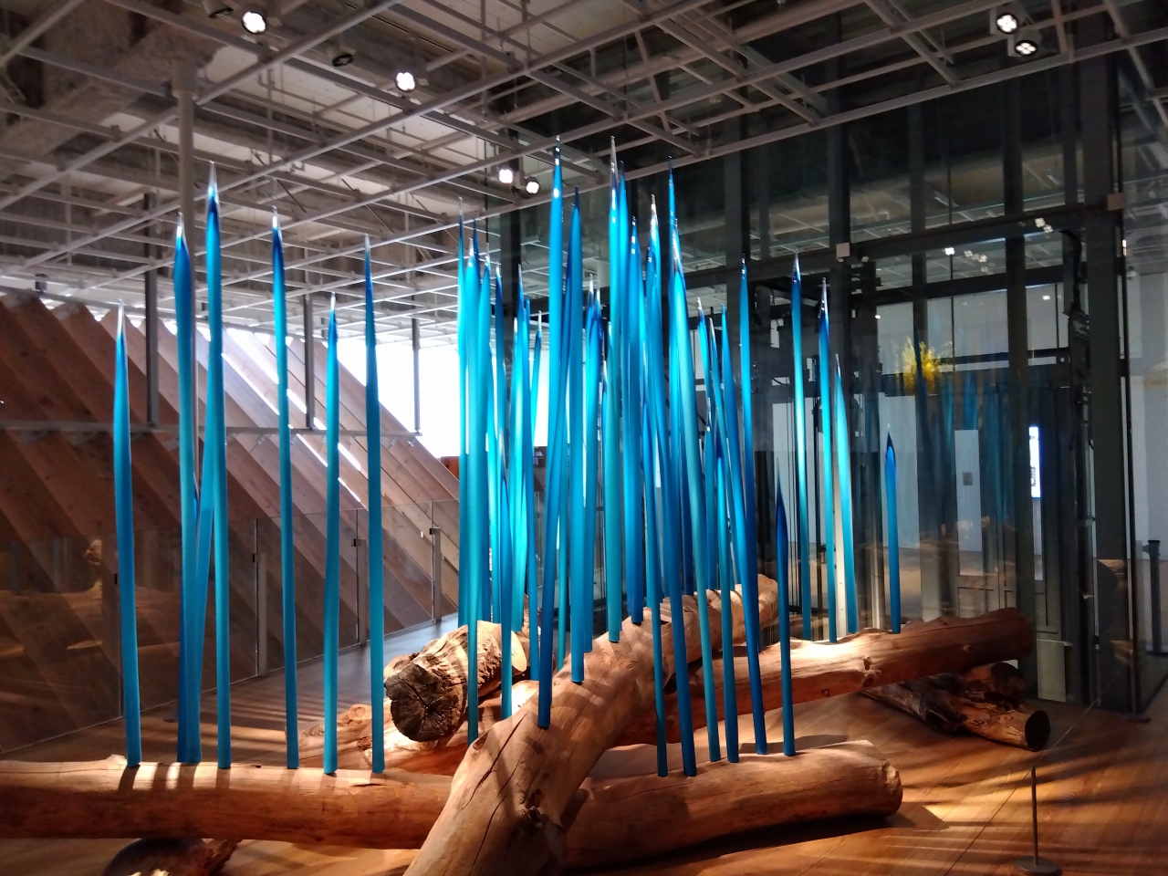 富山市にいった空き時間で寄りました。路面電車もありますが散歩がてら富山駅からでも歩ける場所です。市立図書館と富山市ガラス美術館の複合施設です。