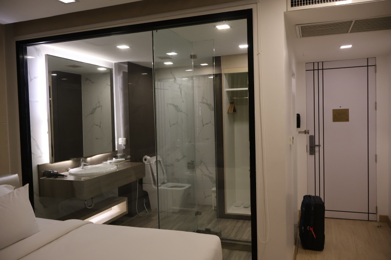 1泊5000円未満、アメニティは最低限、水は毎日2本。掃除は行き届いていて、内装は改装したのか、とれもきれい。おっさんの一人旅はこんなもんで十分