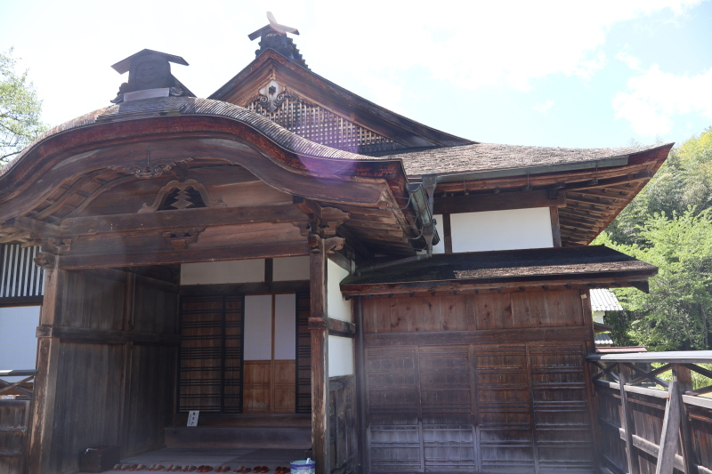 南信方面の旅行案内で発見。400年前の旗本の住まいがそのまま残っています。入場料300円で解説を聴きながら見学します。屋根の葺き方の違い、柱の新旧、ふすまの取って、部屋ごとの障子のサイズの違い、重要文化財になり損ねた輿など微に入り細に入り説明があり、楽しく拝聴しました。けっこう時間はかかりますが。