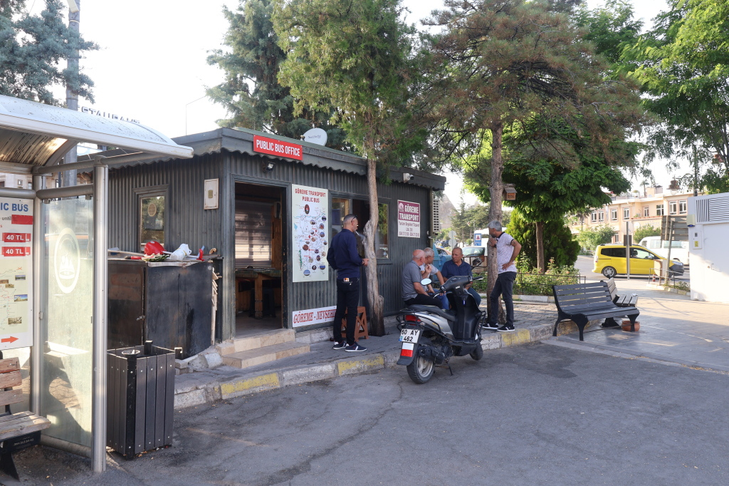 復路は、ギョレメについてから、街の中心のバスターミナルで申し込みました。予約してあった飛行機の便名や時間を伝えると、何時にここ(バスターミナル)に来いと指示があります。10ユーロ、現金