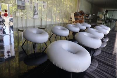 併設されている資料館は、建築のノーベル賞といわれるプリツカー賞受賞の妹島和世と西沢立衛さんのユニット、SANAAの作。建築に興味のある方はどうぞ。中は展示スペースで、どんがらです。展示物もいささか少ない。