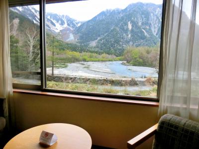 客室から窓一面に広がる穂高連峰を臨む美しい眺望は圧巻でぇーす(笑)