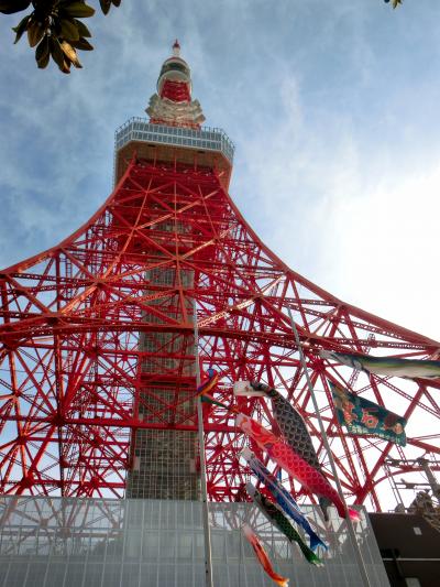 東京タワー春の風物詩「333匹鯉のぼり」が1階正面玄関前に空高く上がっていますww