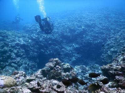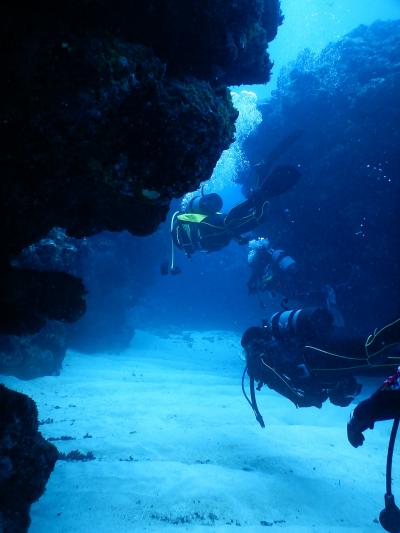 宮古島の海は、海底の地形やホールの中が面白く大変良かったのですが、惜しむらくはダイビング当日天候が悪かったことと魚や珊瑚が少なかったことかな。。