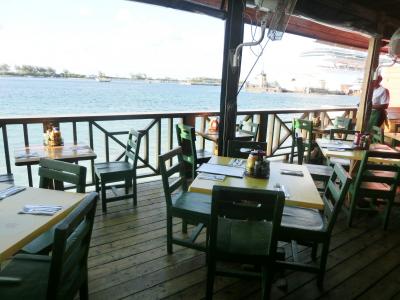 クルーズ船の港が近く、ウォーターフロントのオープンエアのデッキからは