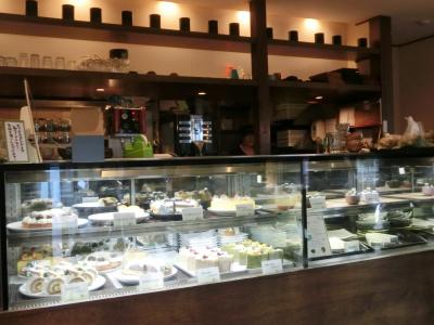 入口を入るとケーキのショーケースがあり、ケーキとカップスウィーツはテイクアウトも出来ますよー