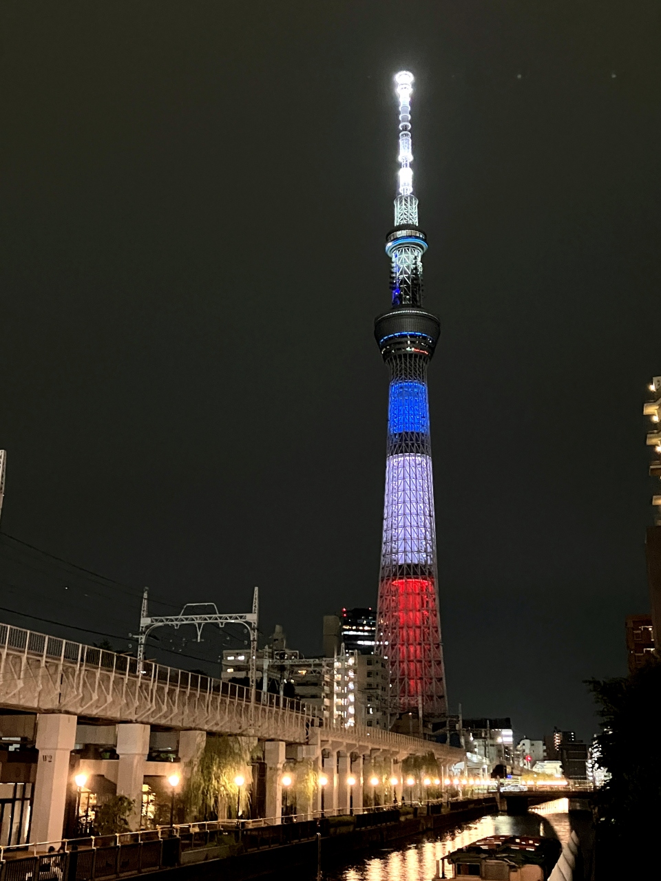 ちなみに、7/26(金)はフランス国旗をイメージした特別ライティングも点灯されました