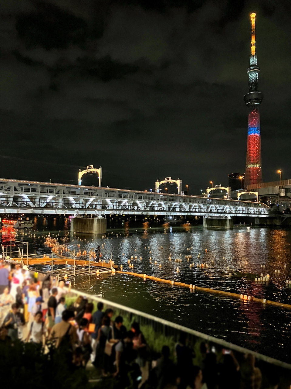 7/27 19:00~20:30は、隅田川花火大会に合わせてライティングを点灯