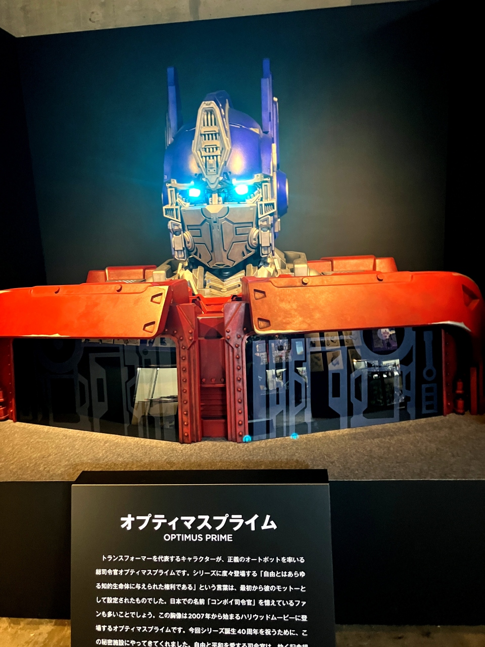 トランスフォーマーONEコーナー、40周年エリア、テレビアニメシリーズエリア(G1)、ショップエリア、ライセンスエリア、歴代作品の紹介、玩具(タカラトミーとHASBRO社)、様々なパーツのサンプルなど40周年にふさわしい展覧会を開催☆彡