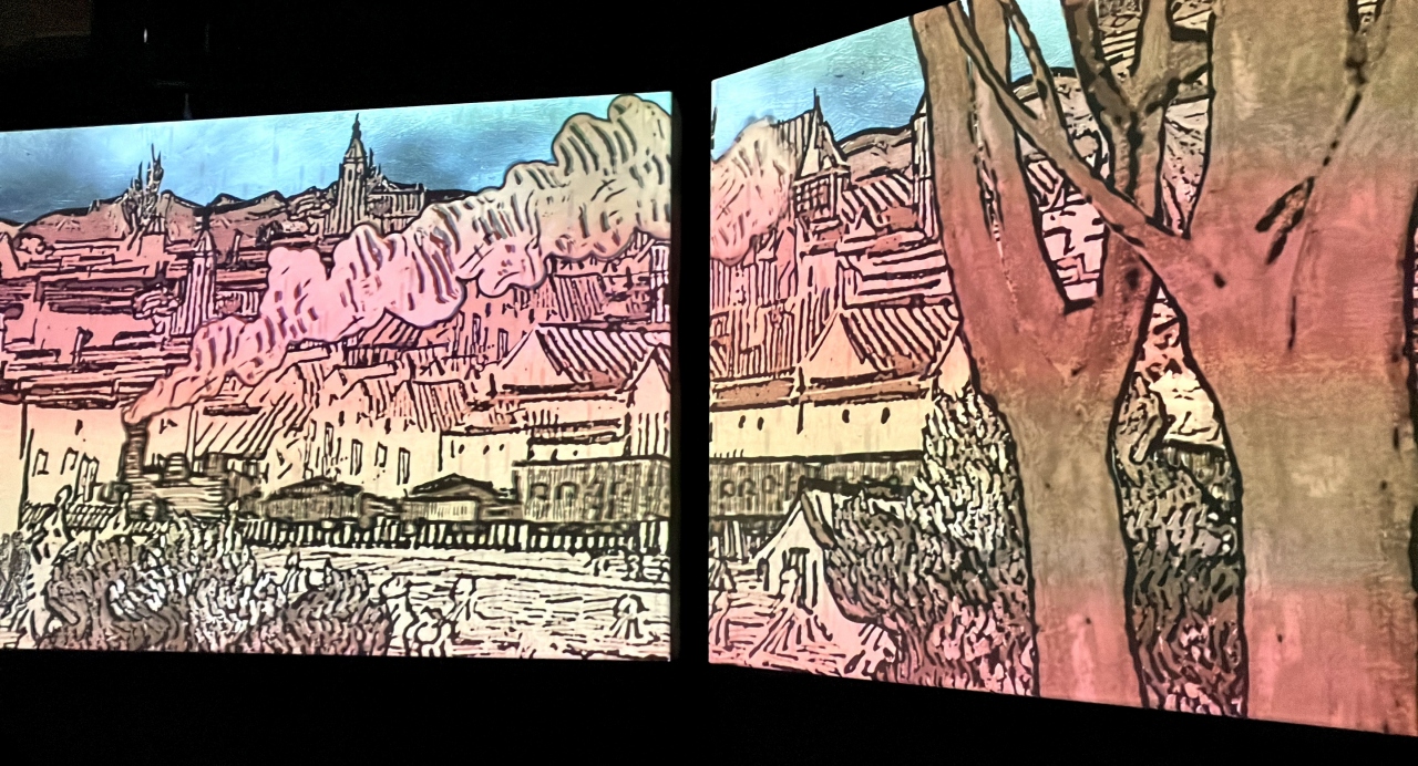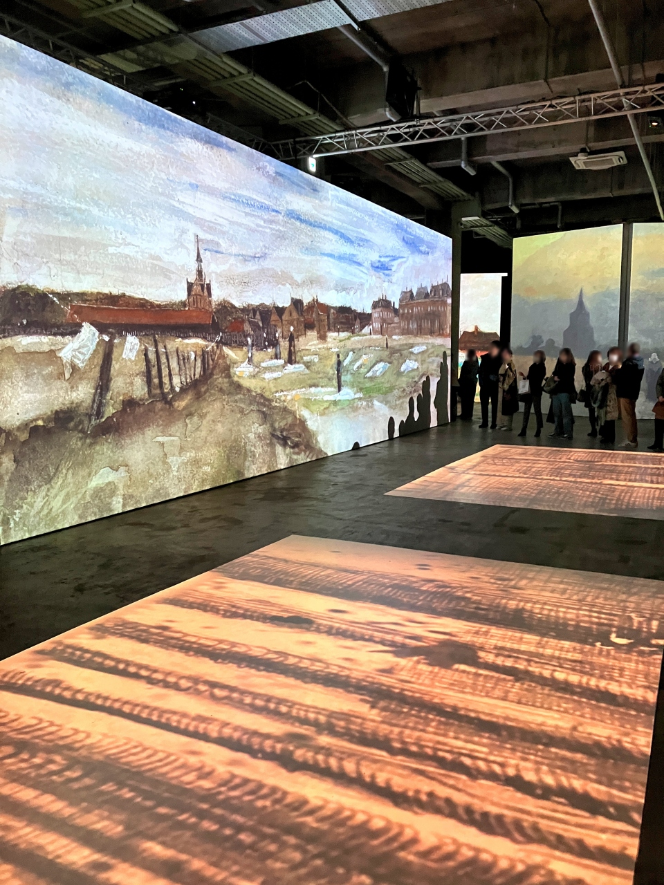 展示室内ではマルチチャンネル・モーショングラフィックスによる没入感溢れるロケーションスペースが設けられ来場者をオランダ、パリ、アルル、サン=レミ、オーヴェール=シュル・オワーズを巡る旅へと誘います。
