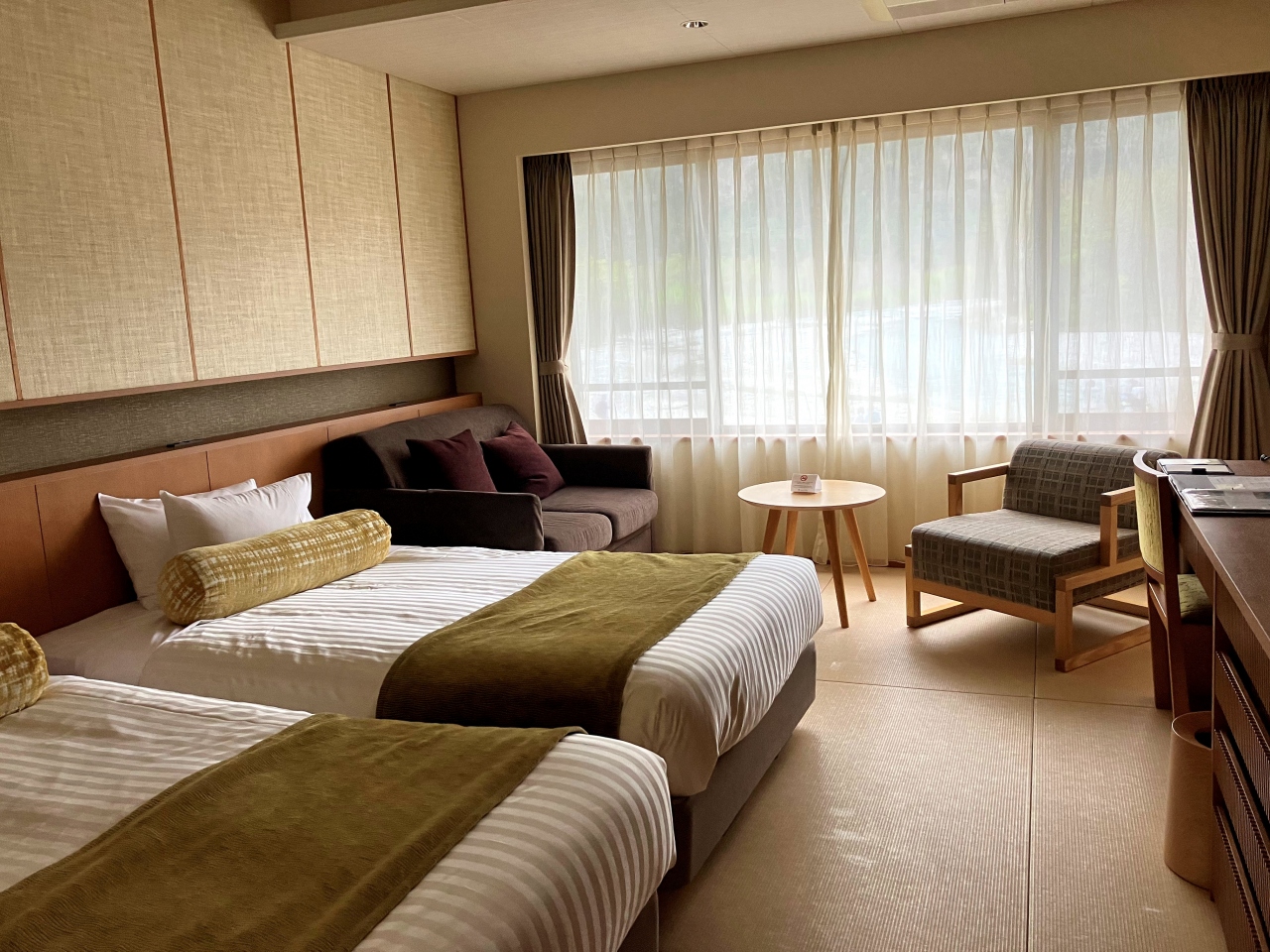 我々は、穂高連峰独占絶景リニューアル ツインルームに宿泊ですv
