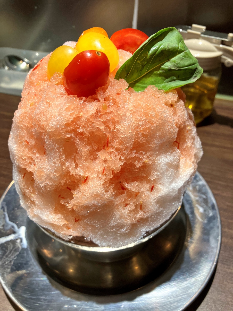 「不思議なかき氷」以外のメニューでおすすめなのが、浅草店限定「西尾抹茶のかきごおり」と「完熟とまとのかきごおり」でっす!