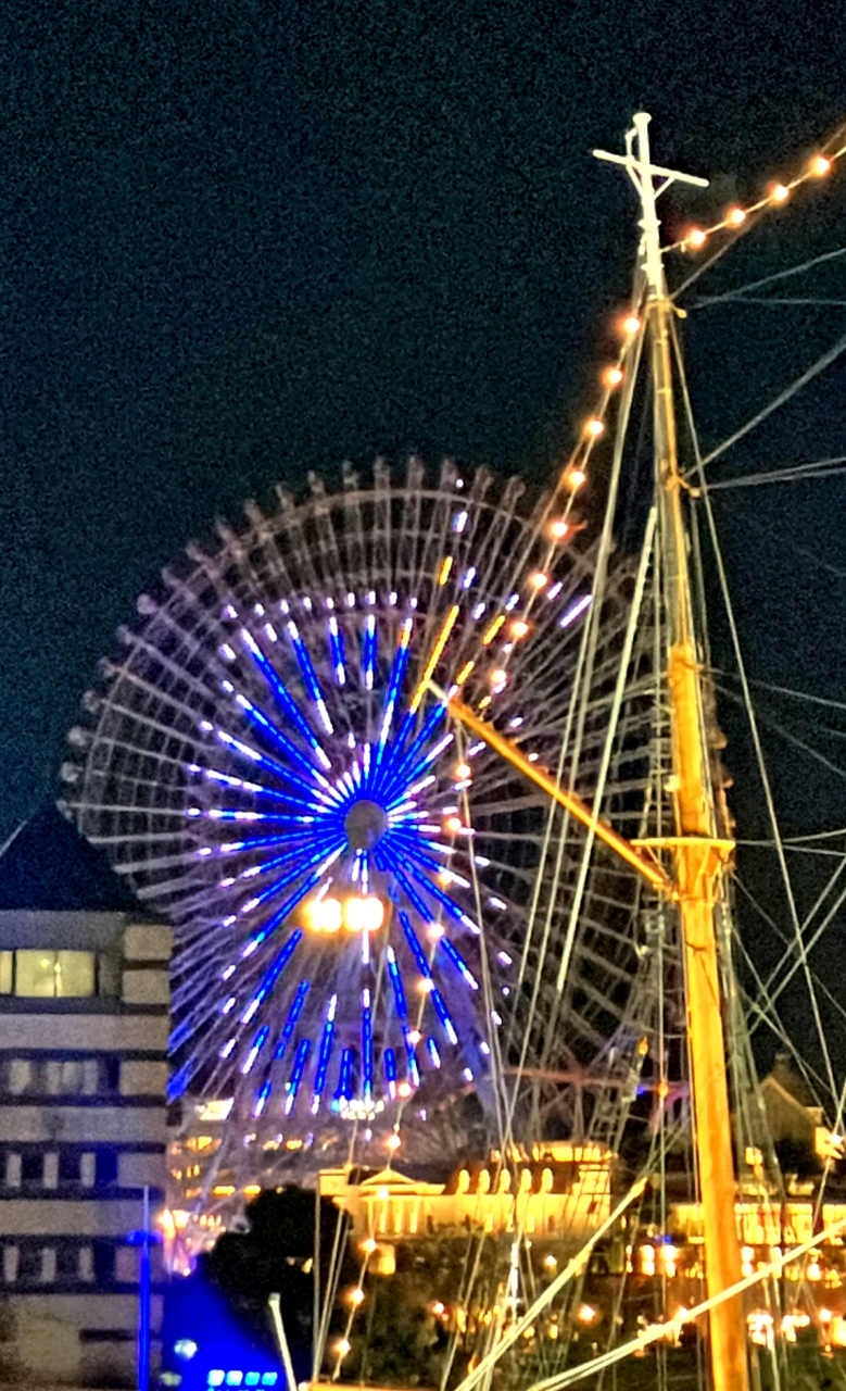ベイスターズ優勝記念で夜は湾岸エリアの施設で特別ライトアップや、ちょっとした花火も上がりました(笑)