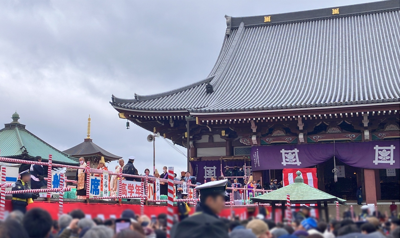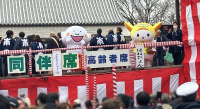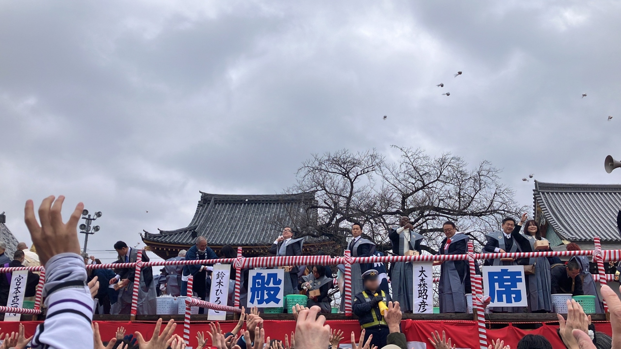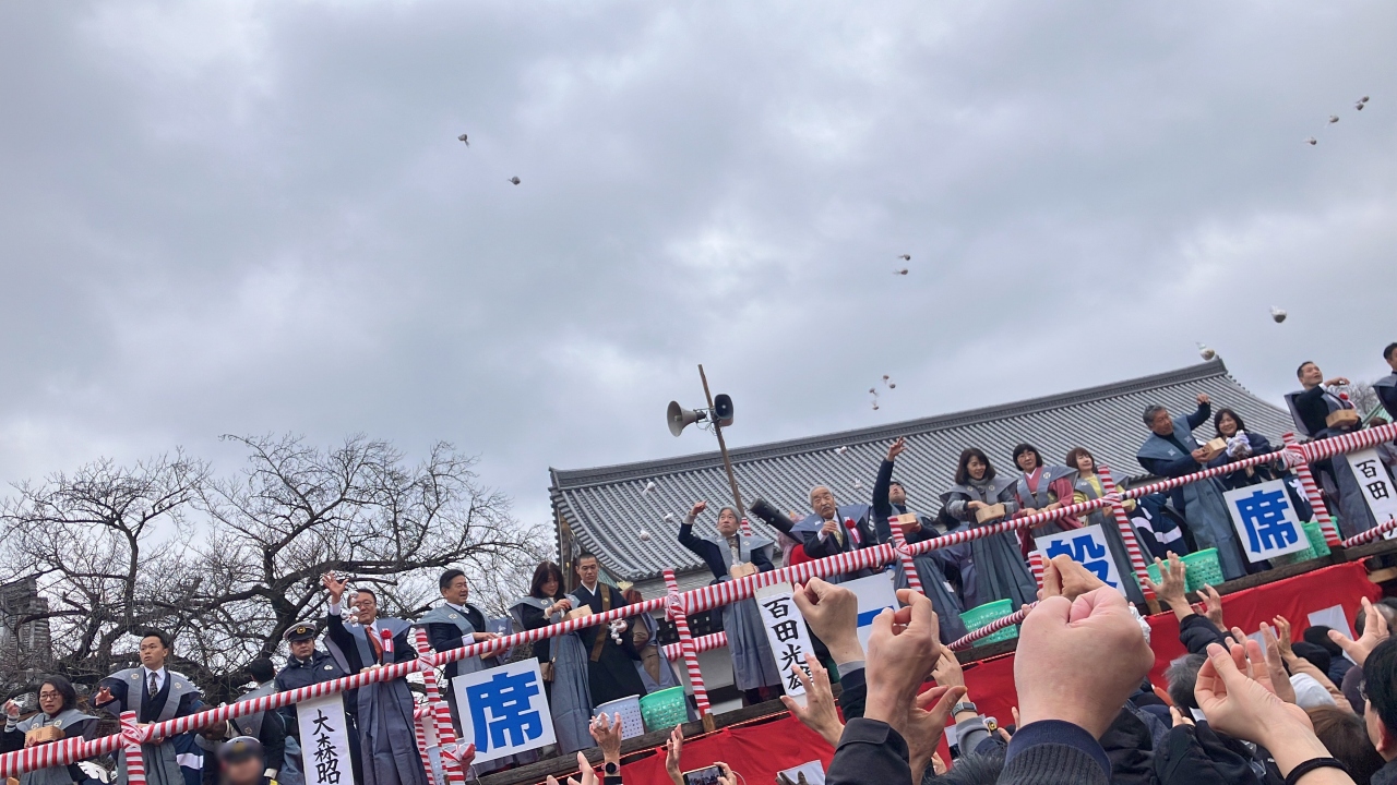 池上本門寺では、裃着装の芸能界・スポーツ界・一般参加の福男・福女による「豆撒き」が行われましたー☆彡