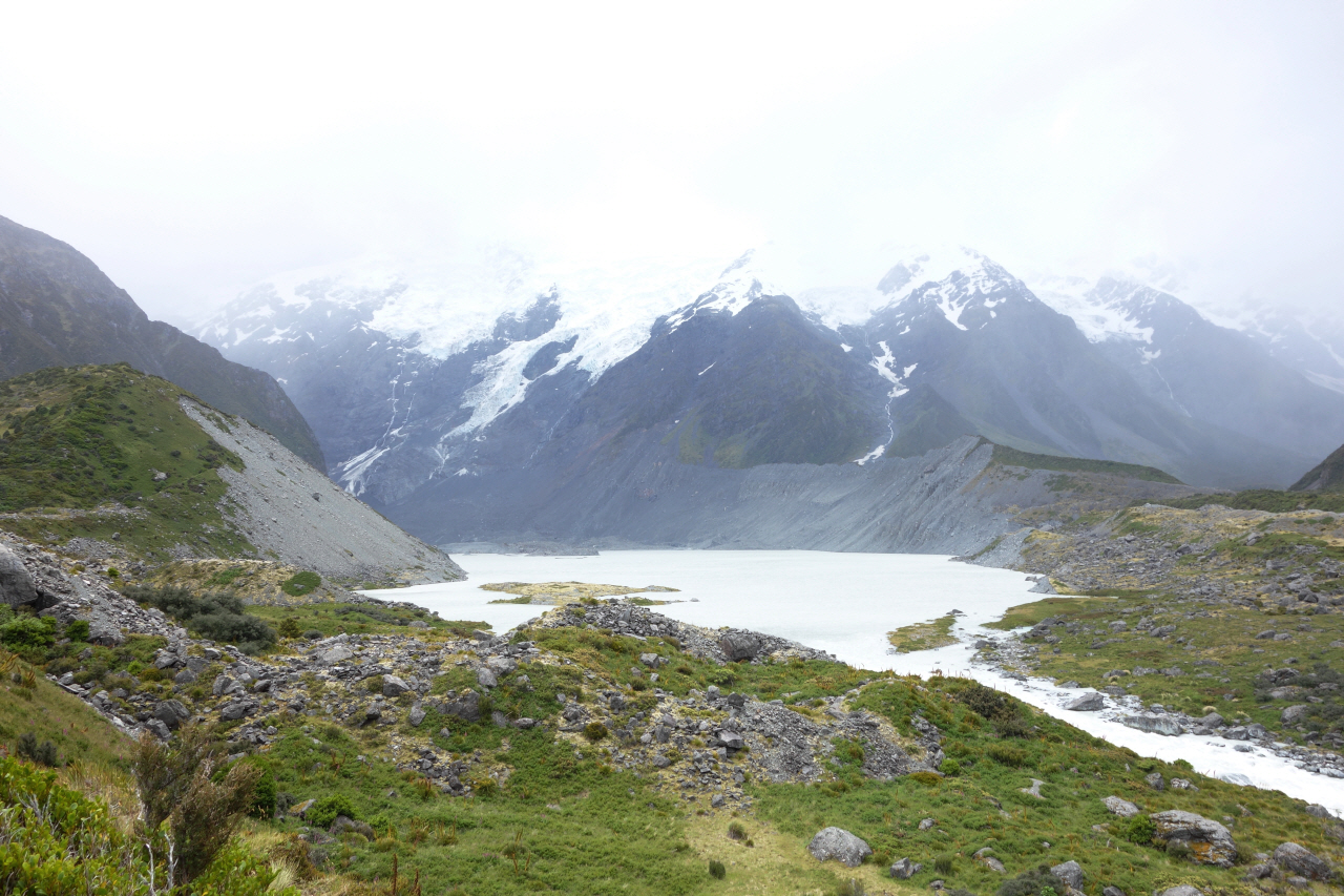 ニュージーランド屈指の観光地ということもあり、行く価値ありの絶景ポイントです。ただ、年間を通して雨が降りやすいために雨が降っても対応できるような服装を準備していく必要があるでしょう。時間があれば、雨が降るかもしれないことを見越して2泊くらいしてもよいでしょう。フッカーバレートラックは往復4時間かかるとガイドブックに書いてありますが、実際は休憩なしでも4時間半くらいかかりました。歩いていると結構疲れてくるので、体力に自信がない人は往復2時間の別のトラックを歩いてもいいかもしれません。
