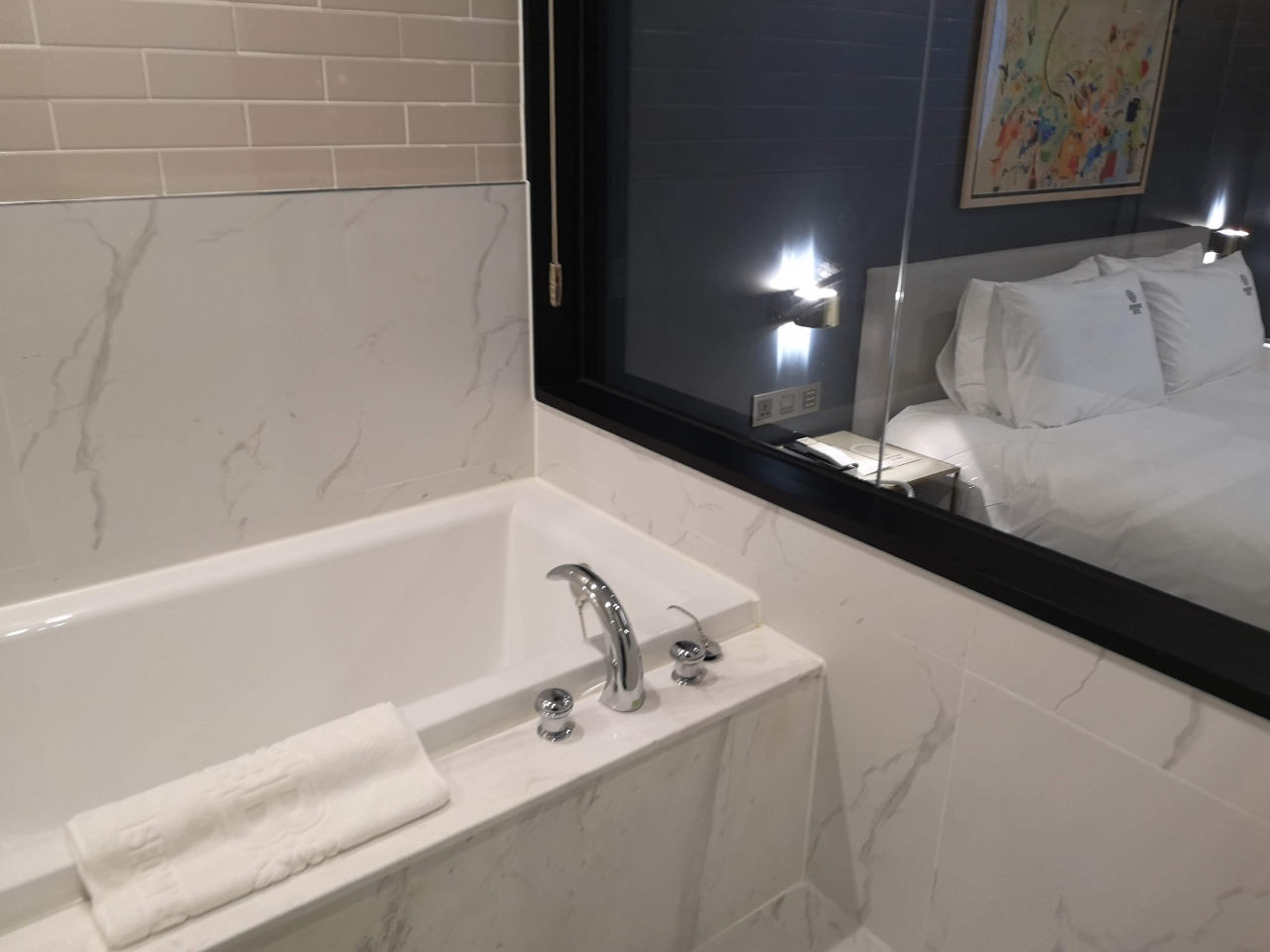 ただ、洗面所がガラス張りで、ブラインドはありますが