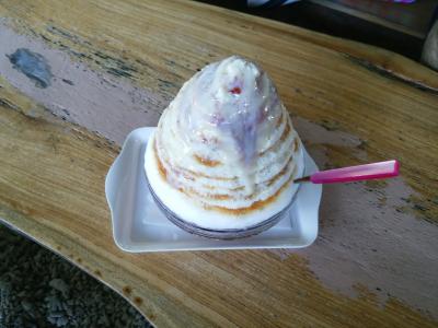 お土産をひと通り購入した後、プレミアムアイスクリームとサクサクパイを無料のセルフコーヒーと一緒に美味しくいただきました。