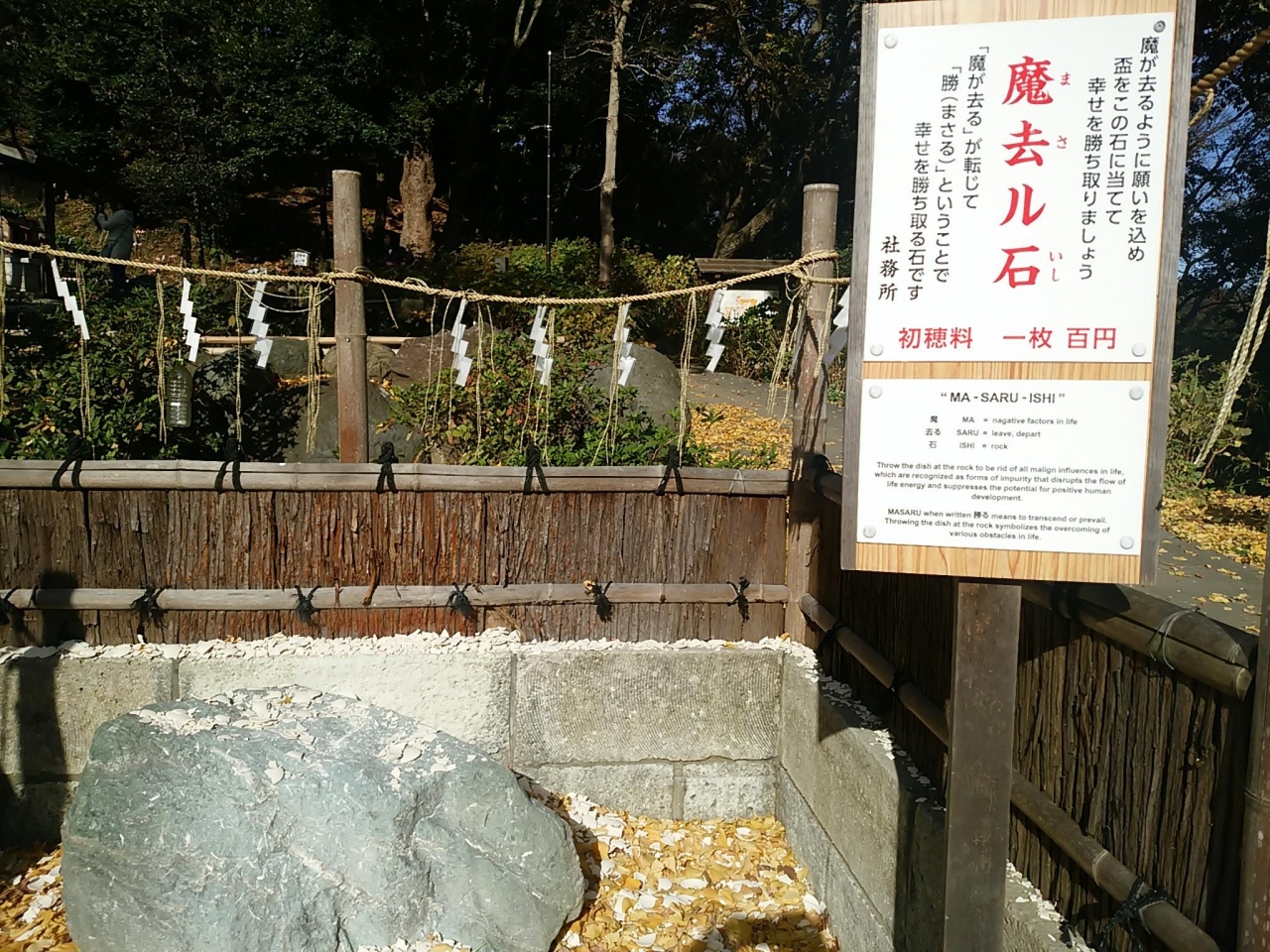 源氏山公園のハイキングコース途中に寄りました。鳥居の左手の背が高いイチョウが見事でした。社務所の前には自販機、すぐそばにテーブルとベンチ、トイレもあり、ひと休みにちょうど良かったです。初穂料100円で盃を当てる「魔去る石」という石が鳥居の右手にありました。「魔が去る」「勝る」で幸せを勝ち取る石だそうです。