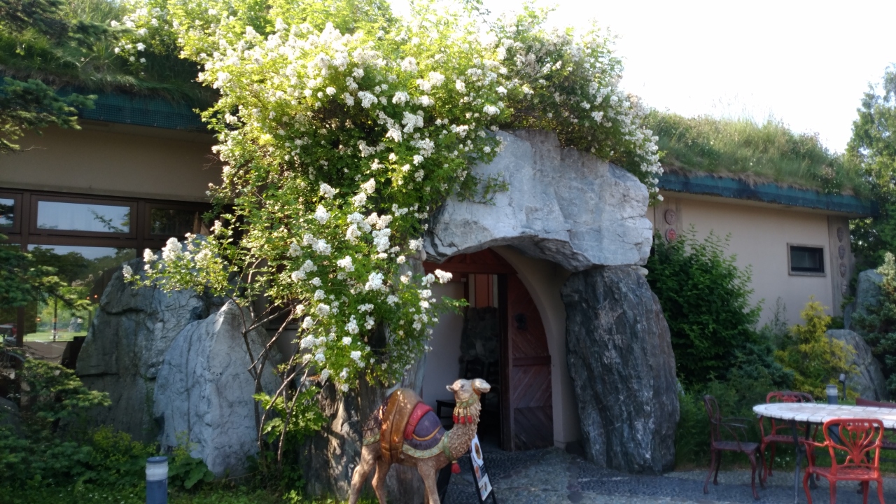えこりん村の銀河庭園、ファームを堪能した後にランチをいただきました。ふたコブらくだのイラストの看板が、目を引きました。店内はゆったりとしたつくりです。うにを使った生パスタが、もともちとしていてとても美味しかったです。窓際の席からは、かわいい羊を見ることもできました。メニューにあったピザも美味しそうで迷いました。