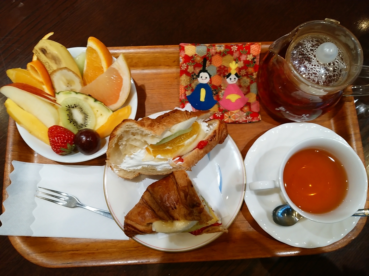 3月の初旬に、クロワッサンサンドとミニパフェのセットをいただきました。選べるサンドの具材は、迷わずフルーツに。