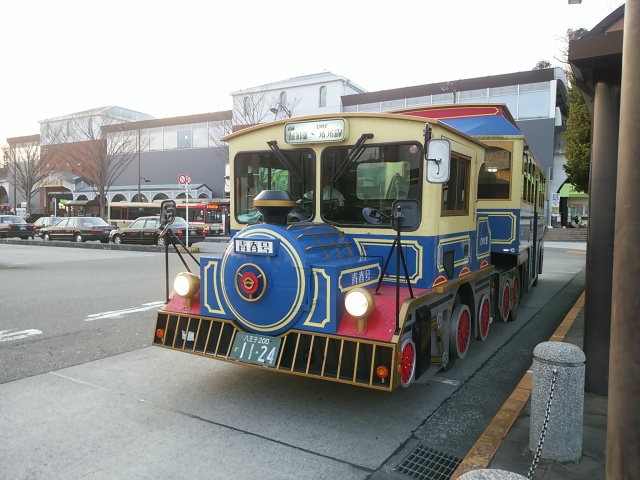 登山帰りに利用する人も多いので、大きなリュックを置く棚があります。武蔵五日市駅からつるつる温泉行きバスで行きました。乗車したのは、可愛い機関車のバスでした。時間によって、普通のバスのこともあるようです。