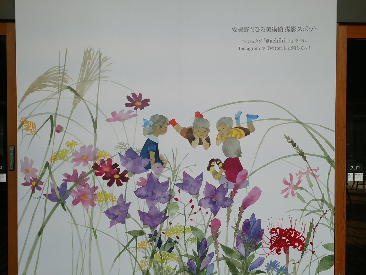 いわさきちひろ作品が大好きで、ずっと訪ねたいと思っていました。JR信濃松川駅前の観光協会で自転車をレンタルできました。北アルプスの山が美しい長閑な風景の中に位置する美術館は、天井が高く広々とした平屋です。バリアフリーの配慮がなされ、小さな子どもも楽しめる部屋や授乳室もあり、安心して出かけられます。作品から出てきたような子どもさんを、館内に多く見かけました。