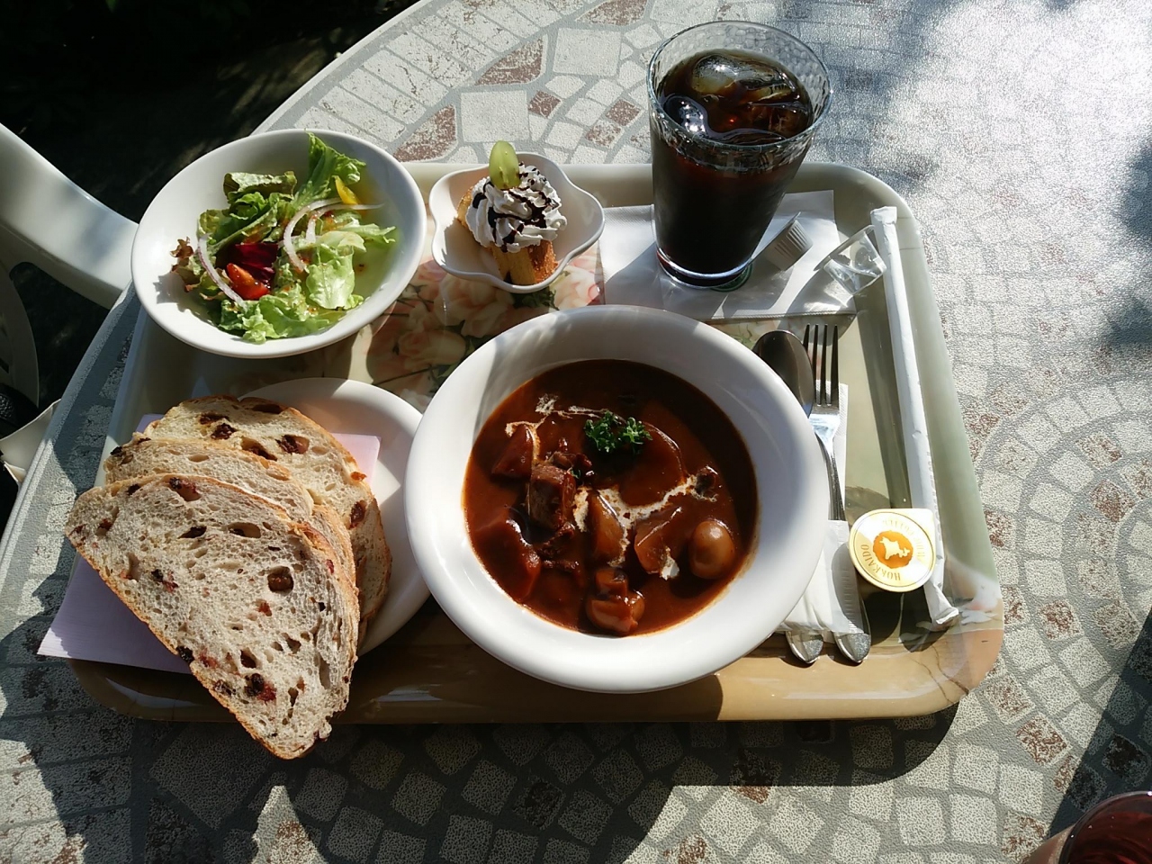 平日の午後、この日はまだビーフシチューのセットがありました。カフェのオーダーがあれば、入場料は不要とのことです。