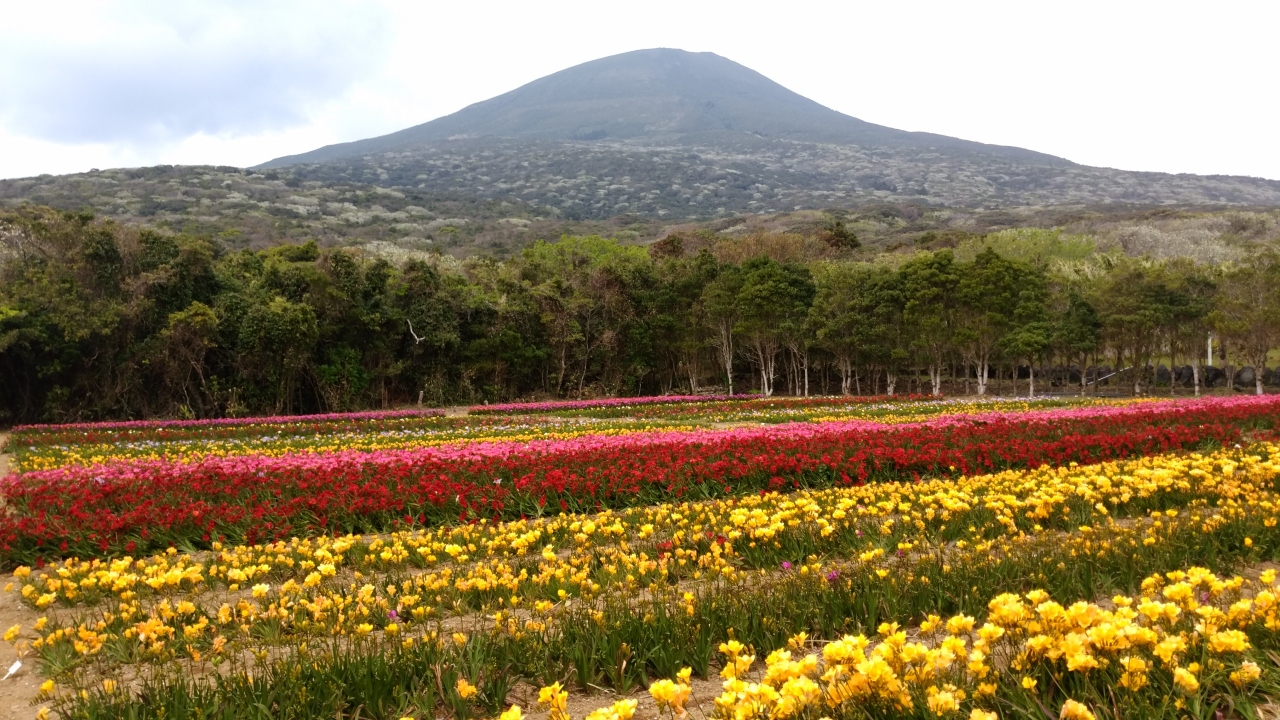 毎年3月下旬から4月上旬に開催されます。会場は空港から近く、八丈富士を背景に色とりどりのフリージアがきれいでした。