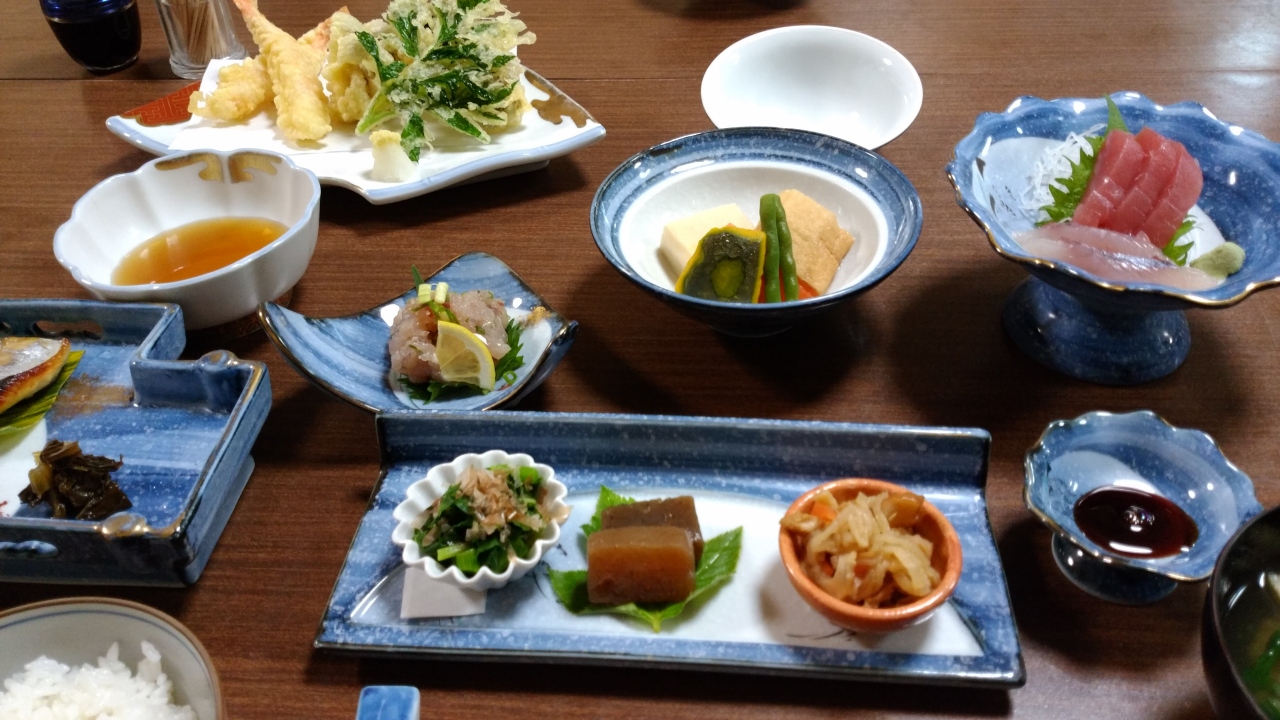 地のものを使ったお食事は、新鮮な魚が美味しかったです。お部屋はシンプルな和室ですが、きれいにお掃除されていました。食堂横の浴室は、島の温泉を巡っていたので、利用する機会はありませんでした。