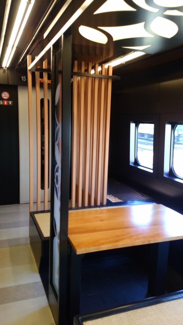 十日町から長岡に移動する際に乗車しました。乗車券と指定席券だけでイベント列車に乗ることができ、お得感がありました。数多い新潟の日本酒の中から、厳選されたものを味わえます。ジャズの演奏もあり、和テイストの車内、大人が楽しい列車です。次回は、大きな車窓から見える景色も楽しみに、長岡から青海川の方面へ乗車したいと思いました。