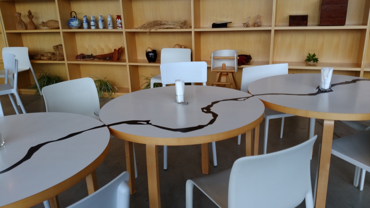 以前、越後湯沢駅店でいただいた「へぎそば」。十日町へ行く機会ができたので、駅から徒歩10分足らずの本店でお昼にしました。開店直後の店内は、整然として清潔感があり、各テーブルには小さな花が飾られていました。歯ごたえがあって変わらず美味しかったです。つなぎに布海苔を使った「へぎそば」誕生が、この地が織物の町であることに関係していることを今回知りました。