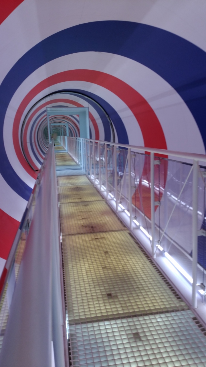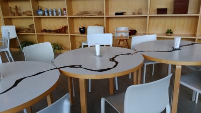 キナーレの四角い建物、美術館の入口から池を挟んだ向かい側です。隣りには総合案内所があります。天井が高く、大きめの湯船、浴室も脱衣所も利用しやすかったです。廊下の椅子や本、ディスプレイなどは、美術館とのつながりも感じられました。金曜レディースディで、入館料の割引の他に、洗い場に泥パックがありました。