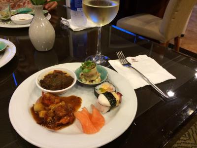 オーシャンラウンジは混雑もなく快適。しかも、ラウンジにルームサービスを運んでいただけるので、ラウンジサービスのワインをいただきながらルームサービスメニューで食事が出来ちゃいます。